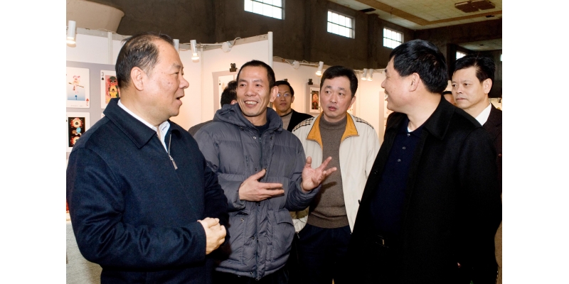福建省省长助理郑松岩(左一)等领导参观我校创意作品展