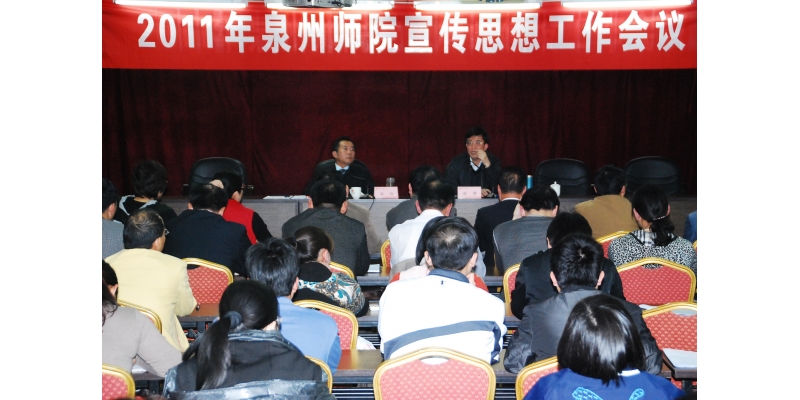 校党委副书记张舟在会上回顾了近几年我校宣传思想工作的主要做法,基本经验,存在的问题和不足,并就做好当前和今后一个时期我校宣传思想工作提出六点要求:一、按照“武装头脑、指导实践、推动工作”的总要求,坚持不懈抓好科学理论武装工作。二、深入开展创先争优活动,争创第四届“福建省党建和思想政治工作先进高校”。三、坚持马克思主义在意识形态领域的指导地位,大力加强社会主义核心价值体系建设。四、提升校园文化活动水平,建设特色鲜明的校园文化。五、推进精神文明创建活动上新台阶,构建“宜学宜教,优雅文明”的和谐校园。六、拓展新闻宣传的深度和广度,营造良好的内外发展氛围。