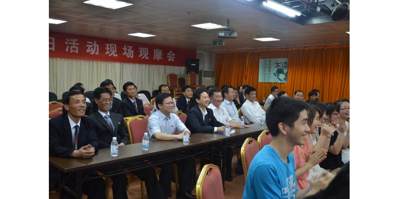 朝鲜代表团观摩了由外国语学院2009级英语教育(3)班团支部举办的“和熙廉风拂校园,浩然正气系你我”的主题班团日活动。活动采取诗歌朗诵、小短剧、毛笔字作品等形式展现廉洁文化,引起朝鲜代表团的极大兴趣。