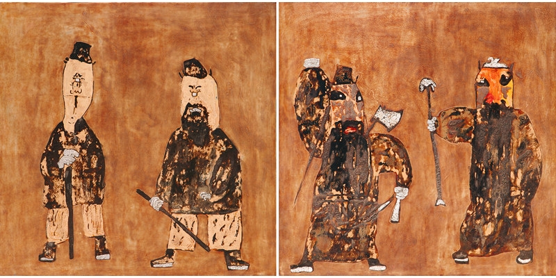 吕小川作品运用轻松、诙谐、稚拙的笔法勾勒人物的神态,结合漆的语言和传统水墨,犹如戏剧空间平面画的结构“写”出水浒人物的性格与特征。作品运用闽南乡土浓郁的色调,仿佛以浓墨重彩渲染出如梦如幻的神韵。