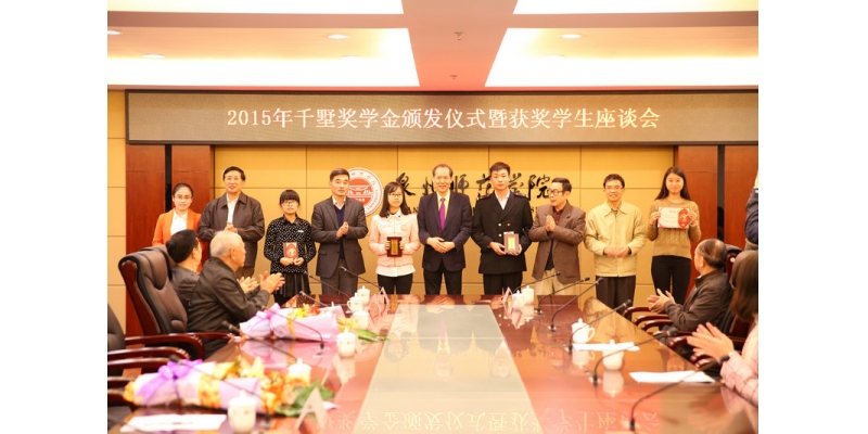 12月7日下午,泉州市关工委第八届千墅奖学金颁发仪式暨获奖学生座谈会在我校举行。泉州市关工委主任、我校董事会永远荣誉董事长、泉州市委原书记施永康,香港福建社团联会永远名誉主席、我校董事会副董事长苏千墅,泉州市关工委常务副主任宋长青、周子澄、郑今奋、傅福荣、陈元殿、赖新民,副主任肖清辉、陈政实,校领导游小波、李清彪、张舟、陈亚兵,我校相关部门负责人、获奖学生出席会议。