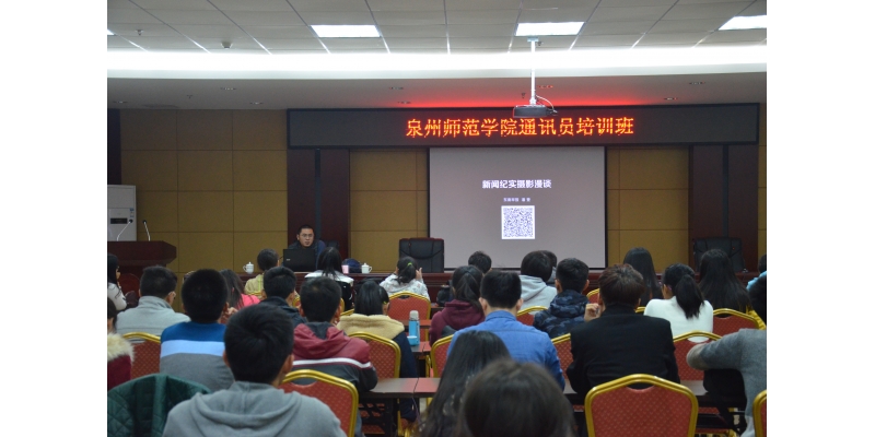 潘登结合自身的摄影经历,就新闻摄影与纪实摄影实务与技巧进行了详细的讲解,用大量的图片说明了新闻摄影“从不同的角度能拍出不一样的感觉”,点明了新闻摄影最重要的是自己能去寻找发现新闻点,指出了新闻图片的拍摄需要具备好的眼光,找好的角度,还要有好的思想;摄影者还要具备扎实的基本功和必要的后期处理技能。潘登还围绕大学校园新闻,详细介绍了大型会议活动、合影等摄影技巧。最后,