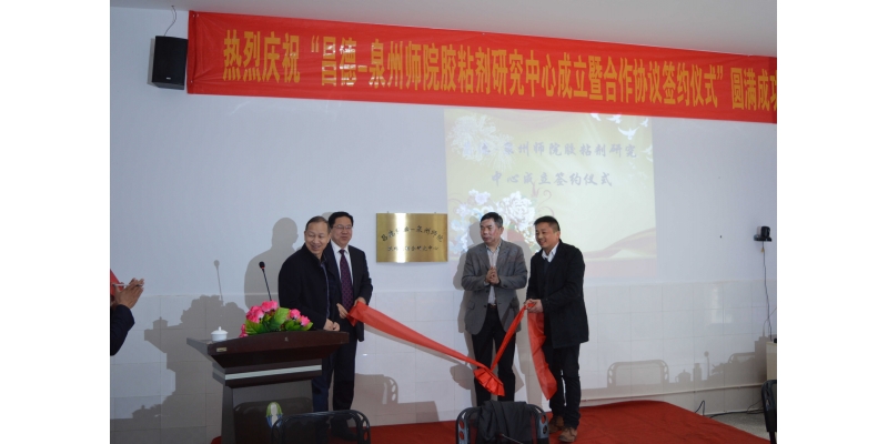 3月25日下午,我校与福建省昌德胶业科技有限公司在南安康美正式签订“胶黏剂联合研究中心”协议。福建省昌德胶业科技有限公司吴培煌代表企业签字,化工与材料学院负责人代表校方签字。
