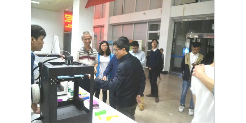 2016年4月20日,由物理与信息工程学院、图书馆、杰利大学生孵化基地联合主办,物理与信息工程学院大学生星光公益科普团队承办的“大学生星光公益科普3D打印展会”在学校图书馆一楼大厅举办。李清彪校长到现场观摩指导。