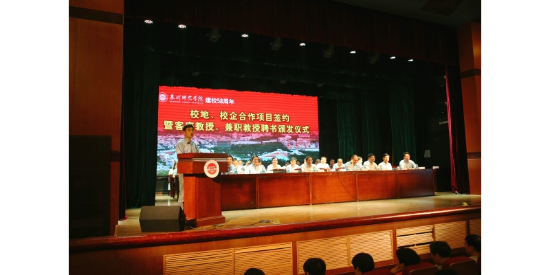 5月8日下午,我校建校58周年系列活动之“校地、校企合作项目签约暨客座教授、兼职教授聘书颁发仪式”在音乐厅举行。台湾龙华科技大学校长葛自祥,泉州市经济和信息化委员会主任黄国富,泉州市发展和改革委员会副主任傅少明,泉州市经济和信息化委员会副主任吴金埔、王春阳,系统党委专职副书记曾钟远,上海泉州商会名誉会长康庆章,北京泉州商会副会长、北京闽南文化创意产业商会会长李明灿,石狮市青年商会常务副会长洪建树等签约企业代表,受聘为我校客座教授、兼职教授的领导、企业家,校领导游小波、李清彪、王珊、邱银富,学校有关部门负责人,二级学院负责人、师生代表等参加了仪式。仪式由副校长王珊主持。