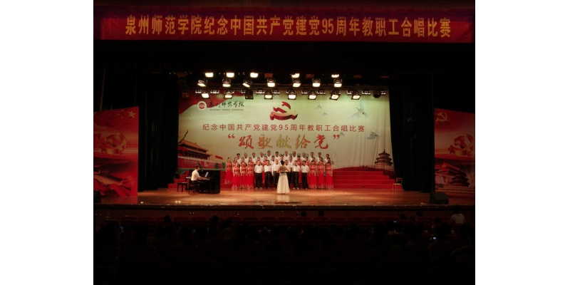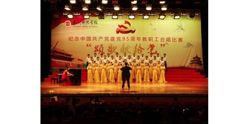 77日下午,由党委组织部、宣传部、工会主办的学校纪念建党95周年“颂歌献给党”教职工合唱比赛在祖昌礼堂举行。校领导游小波、高云程、林伟、王珊、邱银富、杨晓翔观看了比赛。