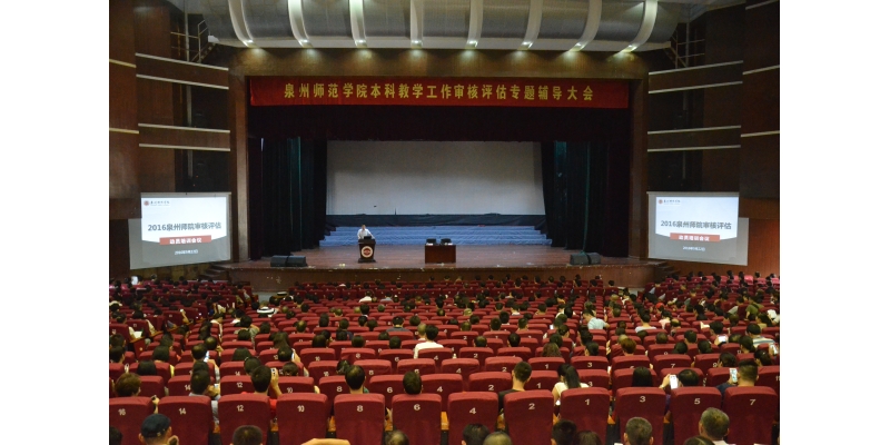 922日下午,学校本科教学工作审核评估专题辅导大会在陈祖昌礼堂召开,副校长杨晓翔做“2016年本科教学工作审核评估”专题辅导报告。校领导游小波、邱银富、王珊出席会议,全校教职工参加大会。会议由校评建办常务副主任、教务处长黄科安主持。
