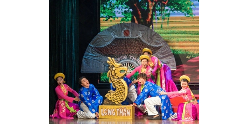 晚会上,越南国立河内艺术学院将与河内艺术协会联袂演出的戏剧《猪大王》,讲述了一个贫穷肮脏的孤儿乞丐,带着胸前的9个特殊的痣“闯四方”,他逐渐成长为一名武术高超的优秀男子,并参军、杀死侵略者,最终成为国王。故事离奇曲折,情节跌宕起伏。演员们凭借着收放自如的表演技巧以及幽默诙谐的肢体动作,还是赢得了观众们的掌声。