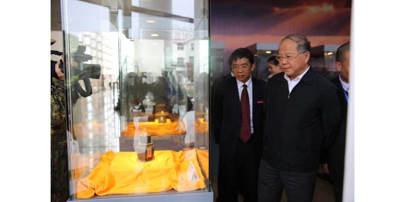 原文化部副部长、中国文物保护基金会理事长励小捷在李清彪校长的陪同下,参观一带一路文化遗产专题展览