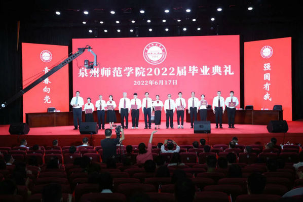 因受疫情影响,今年学校以一场特殊的线上线下相结合的毕业典礼欢送本届毕业生。2022届毕业生代表,泉州师范学院相关领导、相关部门负责人、二级学院党政负责人、教师代表共同参加此次毕业典礼。