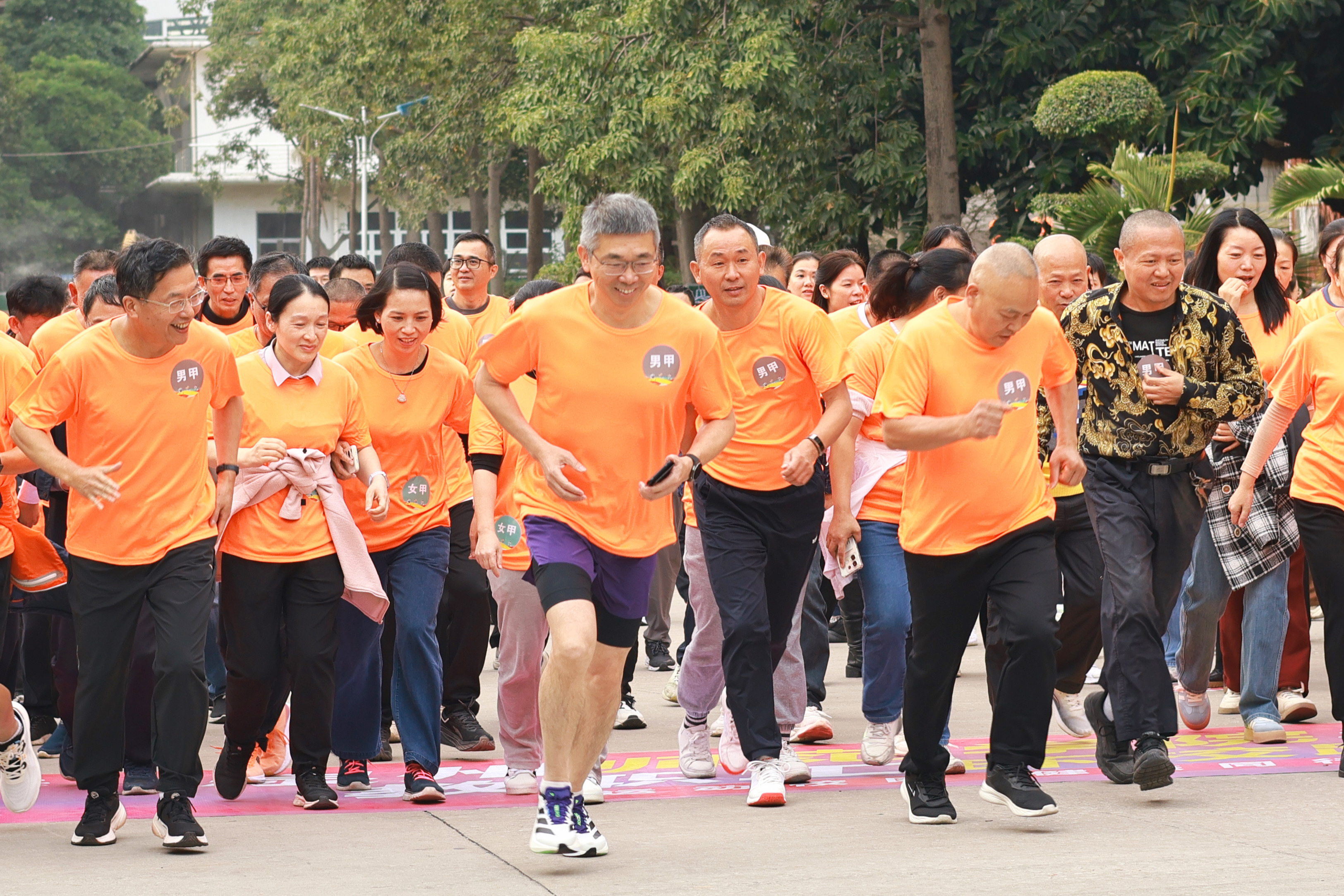本次活动按年龄分为男甲、女甲、男乙、女乙四个组别。下午2:30,参赛教职工们统一身着橘红色T恤衫,齐聚中山广场,脸上洋溢着笑容,在专业教练的带领下进行热身运动,现场气氛热烈而有序。