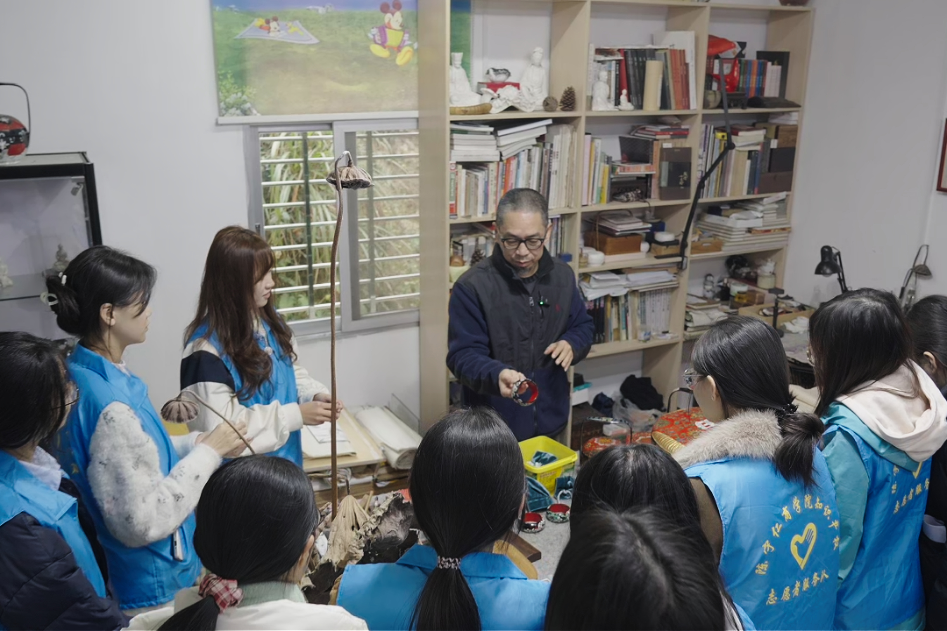 陈守仁商学院”知识产权志愿服务队“正在听传承人李海生讲解漆篮作品的外观专利申请案例