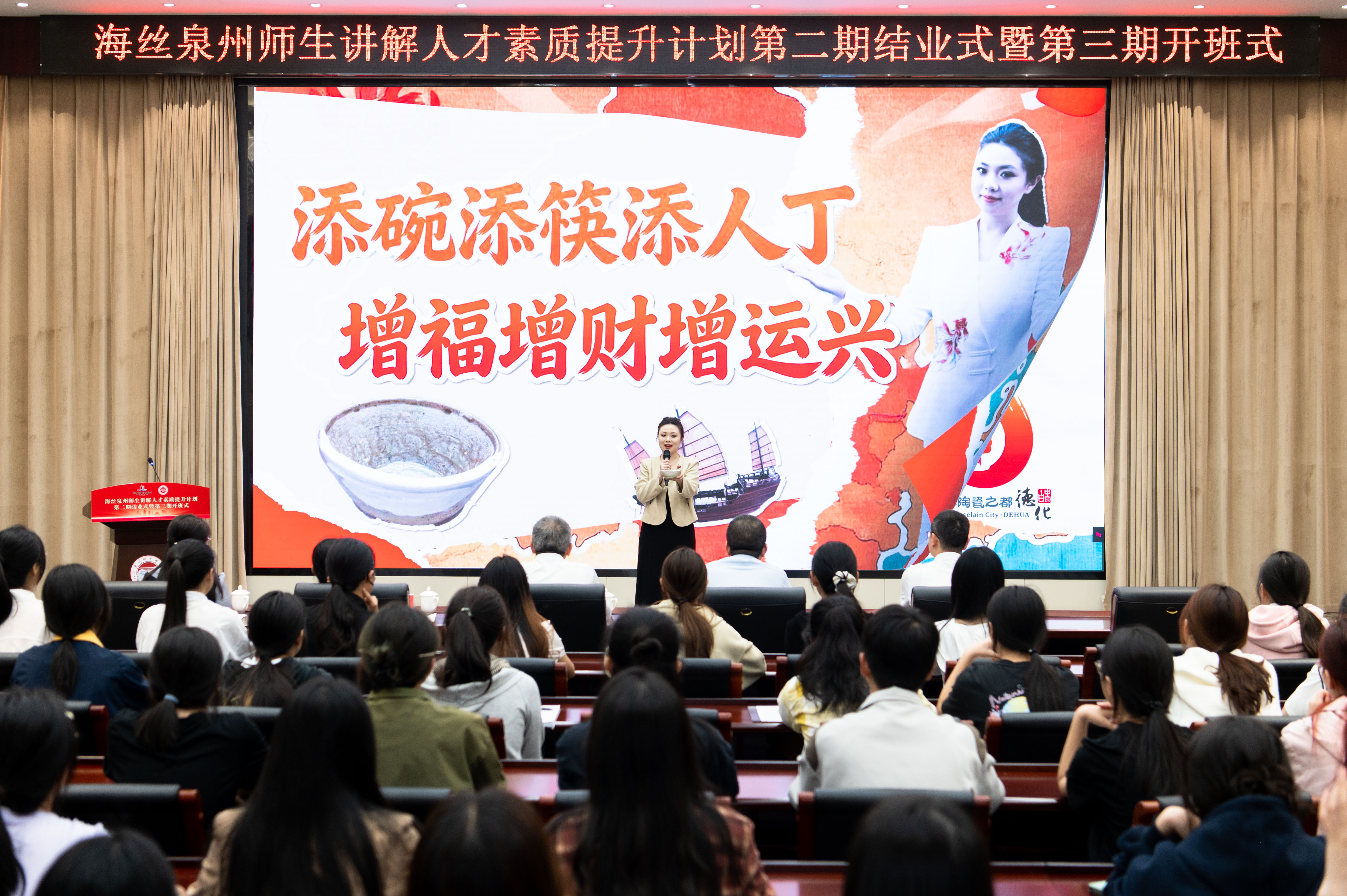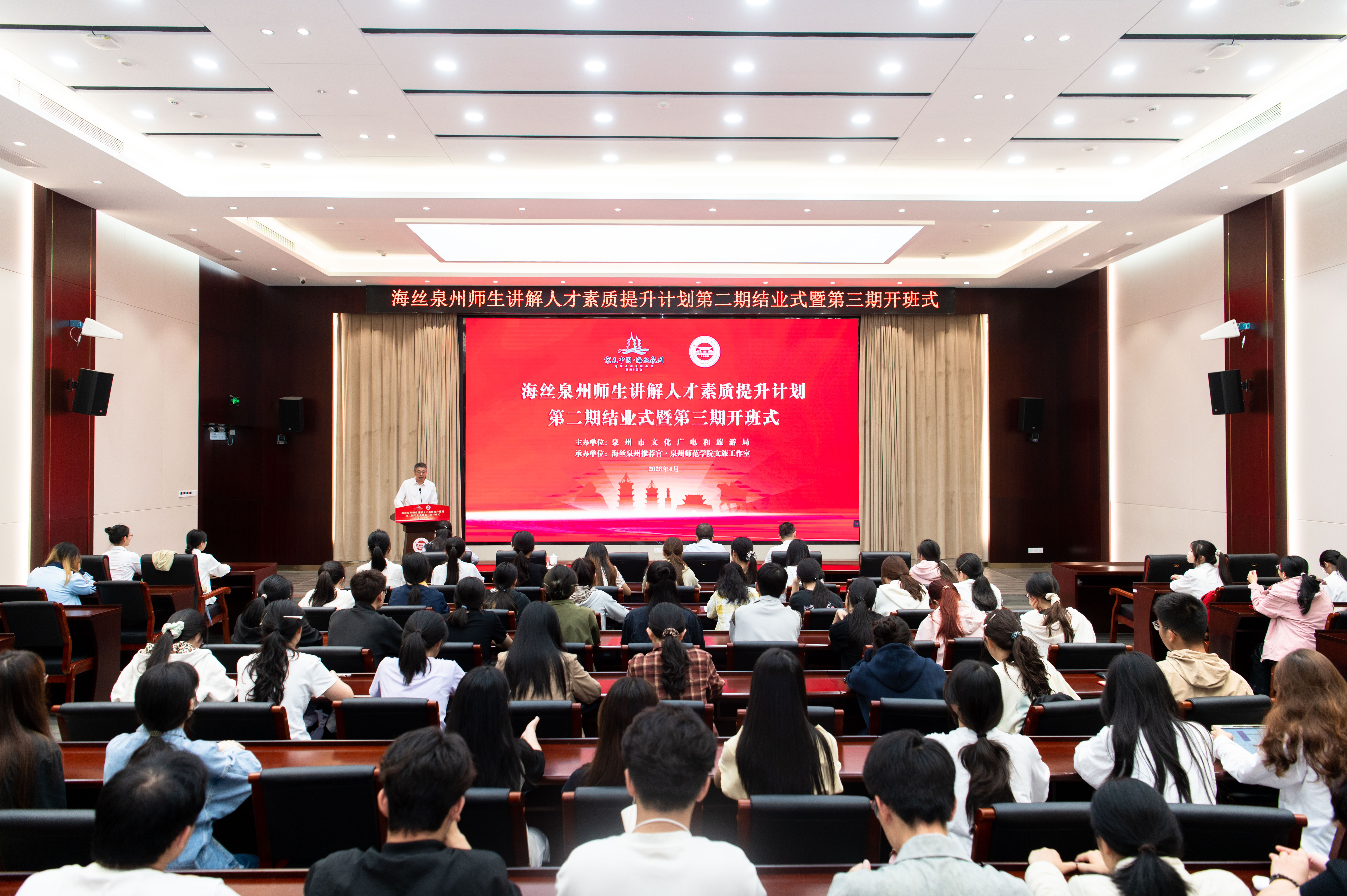 4月16日,由泉州市文化广电和旅游局主办,我校承办的海丝泉州师生讲解人才素质提升计划第二期结业式暨第三期开班式在中山报告厅举行。副校长黄江昆,泉州市文化广电和旅游局党组成员、三级调研员周梁升,相关职能部门、文旅工作室负责人以及参训师生参加。
