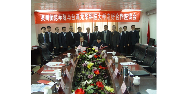 3月26日上午,台湾龙华科技大学校长葛自祥博士一行莅校考察访问,黄子杰校长、林华东副校长、高云程副校长会见了葛校长一行,两校签订了合作办学协议。成功对外交流学院、教务处及各闽台合作专业相关负责人参加了会见和签约仪式。