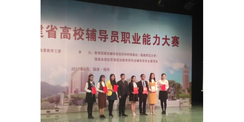 本届福建省高校辅导员职业能力大赛由中共福建省委教育工委主办,福建省高校辅导员专业委员会承办,共有来自全省各高等院校的71名选手参加。比赛分为复赛与决赛两个环节,从复赛的基础知识测试、主题班会、案例分析三个环节的比拼中,决出20名选手入围大赛决赛,决赛包括现场主题演讲、谈心谈话两个环节。