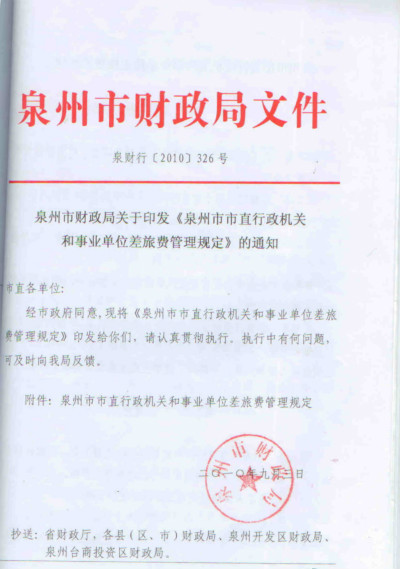 各单位:《泉州市市直行政机关和事业单位差旅费管理规定》已于2010年10月1日实行,为了让大家进一步了解相关管理规定内容,以便更好地执行差旅费管理规定,现将该文件转发给你们,请认真组织学习并遵照执行。 泉州市财政局关于印发《泉州市市直行政机关和事业单位差旅费管理规定》的通知 泉州市市直行政机关和事业单位差旅费管理规定 财务处 2012年10月15日