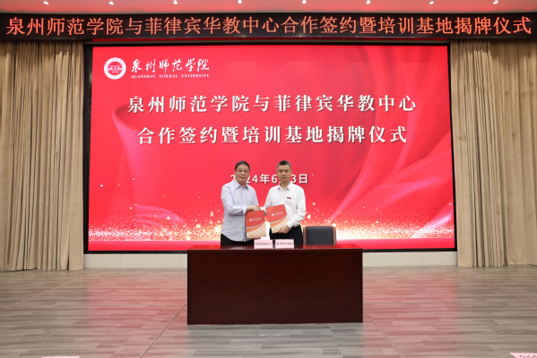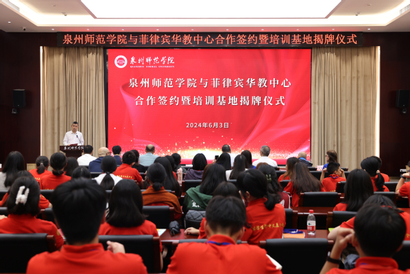 On the afternoon of June 3, the signing ceremony between QNU and Philippine Chinese Education Research Center, as well as the unveiling ceremony of the training base, was held in the First Meeting Room of Sun Yat-sen Memorial Hall. The event was attended by Chen Changping, President of QNU, Huang Jiangkun, Vice President, Huang Duanming, Chairman of the Philippine Chinese Education Research Center, Niu Hong, fourth-level researcher from United Front Work Department of the CPC Quanzhou Municipal Committee, Ji Ru, fourth-level researcher from Quanzhou Municipal Bureau of Education, five team head teachers including Zhuang Rongzhen and Lei Luoma and 74 campers of 2024 Chinese-learning Summer Camp for Filipino Chinese Students, as well as relevant department directors and faculty and student representatives of the university.