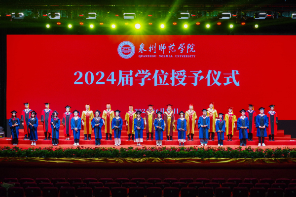 During the ceremony, Ke Ruiqing presented a commemorative plaque to alumni Lin Yumei. Vice President Xiahou Jianbing read the official document on graduation and degree conferral for the Class of 2024. Chen Xiaofeng, Deputy Party Secretary of QNU, announced the recognition of outstanding graduates, with leaders and guests presenting honorary certificates to their representatives.