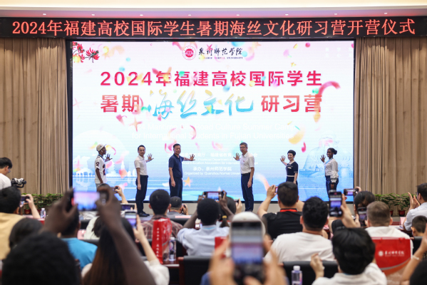 QNU launched the 2024 Fujian International Student Summer Camp on Maritime Silk Road Culture with an opening ceremony on the morning of August 13. The ceremony was attended by Vice President Huang Jiangkun; Wu Wentong, President of the Fujian Education International Exchange Association; Zhang Chunsheng, Secretary-General of the association; Ji Ru, Fourth-Level Researcher from the Quanzhou Education Bureau; and Huang Decong, Fourth-Level Researcher from the Quanzhou Foreign Affairs Office. Nearly 100 participants from 26 countries joined the event, including international students from seven universities across Fujian, such as Fujian Normal University, Fujian Agriculture and Forestry University, Fujian Medical University, Fujian University of Technology, Minjiang University, Fuzhou University of International Studies and Trade. Representatives from QNU relevant departments were also present.
