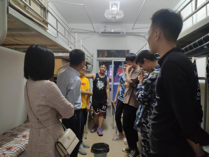 9月30日下午,学院党委书记张玉武、学工办副主任聂莹及辅导员陈灿辉深入学生宿舍,开展国庆、中秋双节前夕学生宿舍走访工作。