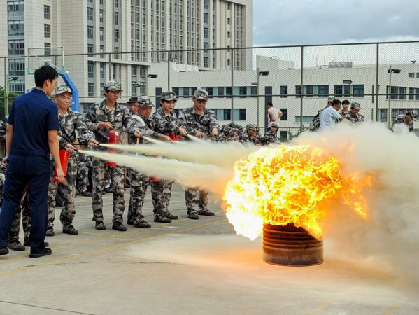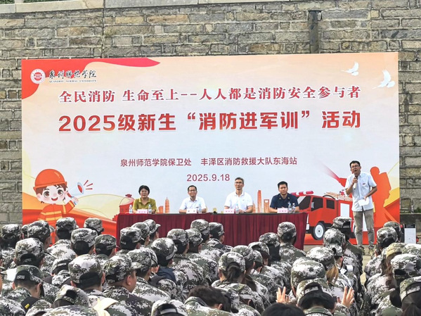 为进一步强化师生消防安全意识,纺织与服装学院于9月18日下午组织2025级全体新生开展了“消防进军训”活动。丰泽区东海消防救援站副站长张翼翔到场指导,学校保卫处处长戴锋、学生工作部(武装部)五级职员黄志梅、保卫处安全科副科长洪国祥,学院党委书记黄国波,新生辅导员及全体2025级新生参加。