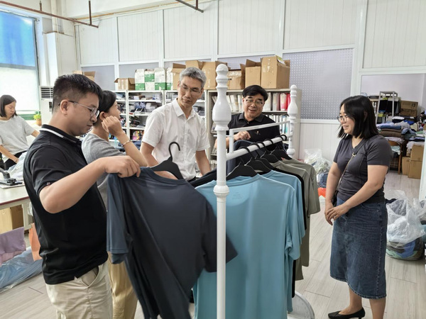 学院一行参观了企业展厅,详细了解企业在功能性面料研发、智能制造、绿色生产等方面的创新成果。双方围绕校企党建引领产业转型升级进行了深入交流。黄国波表示,希望今后通过产业链党建工作共建,进一步推动“组织共建、资源共享、发展共谋”,将党的政治优势、组织优势转化为发展优势,校企共同促进教育链、人才链与产业链、创新链有机衔接。