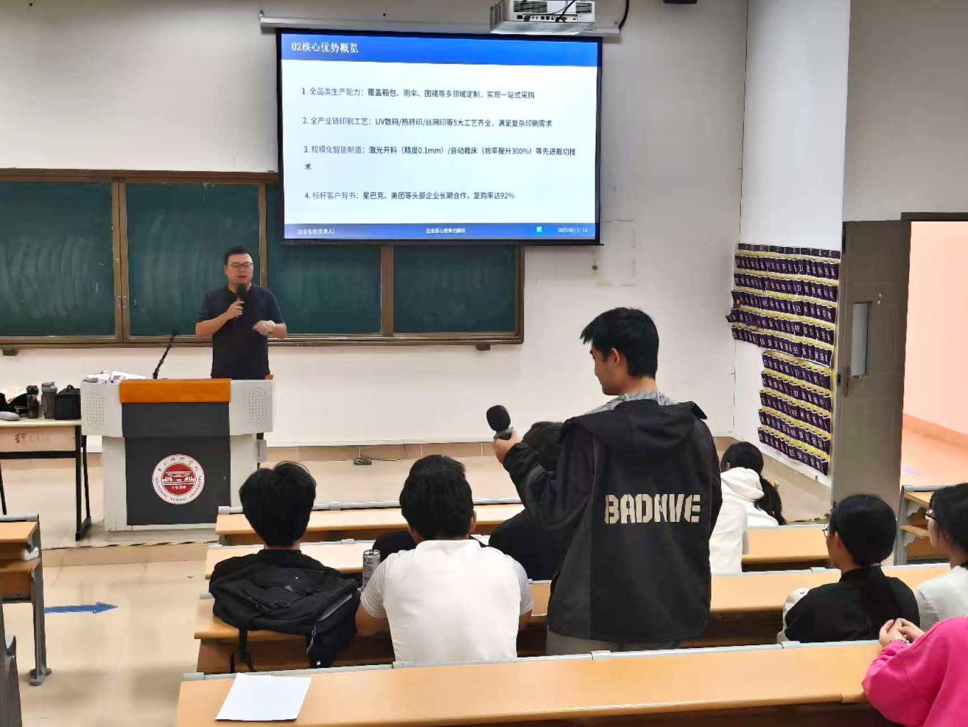 张翰允结合自身经历,以独特的视角分享了从毕业求职到自主创业的心路历程。他回顾了在泉州师范学院的求学时光,讲述了在校期间参与社团活动、企业实习的收获,以及毕业后深入行业积累经验、分析趋势并抓住机遇的过程。在此基础上,他最终选择回到家乡河南创业,运用自己掌握的纺织工程专业知识体系,逐步在商业领域中探索出一条独具特色的发展路径。