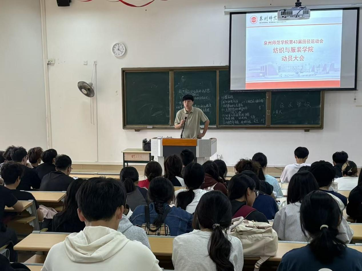 为激发运动员竞技热情,凝聚团队向心力,保障校运会顺利开展,11月10日,纺织与服装学院于荣助212召开第43届校运会动员大会。全体运动员及体育部成员参加此次会议,会议由辅导员陈志鹏主持。