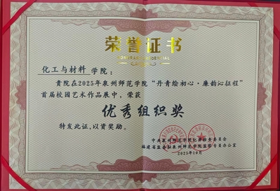 喜报|化工与材料学院在2025年泉州师范学院“丹青绘初心·廉韵沁征程”首届校园艺术作品展评选中荣获“优秀组织奖”