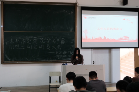 2025年11月7日中午,化工与材料学院在理工楼319教室举行第43届校田径运动会动员大会。学院党委副书记兼纪委书记林琦芳做动员讲话,全体辅导员,学生主干,志愿者及全体运动员参加动员大会。