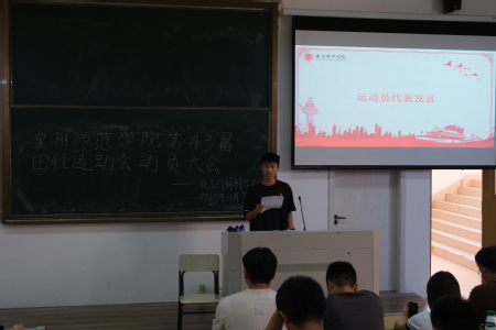 傅煜坤同学表示,校运会既是一场竞技,更是新生融入集体、展现风采的舞台,日常的训练不仅教会我们突破自我,更让我们懂得团结协作。他倡议:让我们以昂扬的姿态迎接比赛,用拼搏诠释青春,为集体赢得荣誉。最后,他代表全体运动员预祝校运会圆满成功。