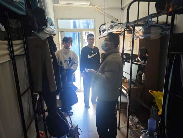 此次排查以安全隐患清零和卫生环境优化为核心目标,重点检查宿舍内有无使用违规大功率电器、私拉乱接电线等安全问题,细致排查宿舍区消防通道是否畅通、消防设施是否完好等关键环节,同时对宿舍内务整理、卫生清扫情况进行同步检查。检查过程中,发现私拉乱接电线1处,套间宿舍客厅物品堆积杂乱2处,辅导员对发现的安全隐患和卫生问题现场记录、现场整改,并做好整改反馈。