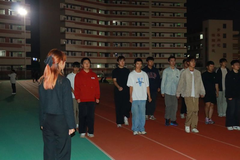 从最初的脚步错落、动作生疏,到如今的整齐划一、节奏默契,同学们的成长在每一次练习中悄然积淀。当嘹亮口号划破夜空,当统一步伐震出回响,这支由学长学姐领航的方阵,正以汗水浇灌坚持,用行动书写青春力量。