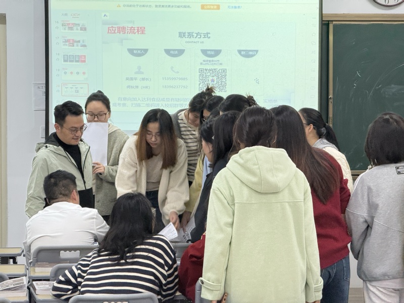1223日下午,我院联合达利食品集团,在浅水湾创业基地305室举办实习就业专场宣讲会。活动以“招聘+实习”双轨模式,吸引学院食品科学与工程专业应届毕业生及意向实习生到场参与,现场交流氛围热烈。