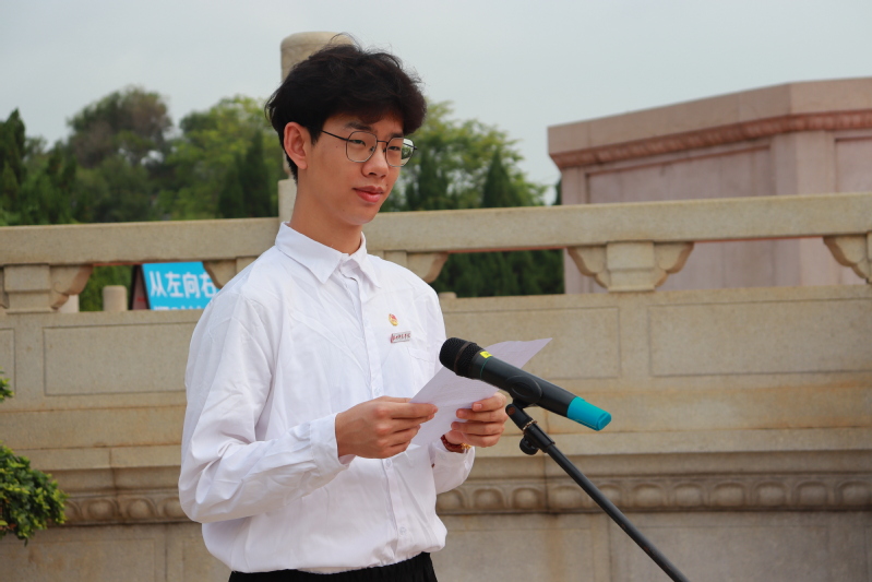 学院团委宣传部副部长苗成博作为老团员代表发言。他表示,作为新时代的青年团员,我们要时刻铭记历史、缅怀先辈、感恩先烈,珍惜来之不易的和平安宁环境,要以革命先烈为榜样,坚定理想信念、锤炼品德修为、增长知识见识、培养奋斗精神,努力成为担当民族复兴大任的时代新人。