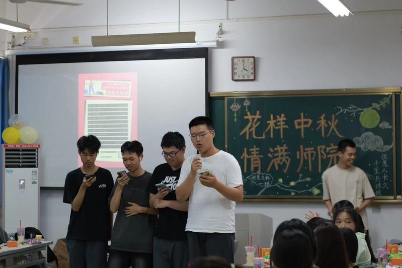创意游戏,乐享中秋佳节趣。在“你比划我猜”的游戏中,同学们用肢体语言搭建起沟通的桥梁,放下了初见的羞涩,拉近了彼此的距离。而“月饼蹲”游戏则将传统与现代巧妙结合,让中秋的欢乐无限延续。此外,还有月宫投壶、灯谜猜猜等游戏,不仅考验了同学们的技巧与耐心,更在挑战中激发了团队的合作精神。