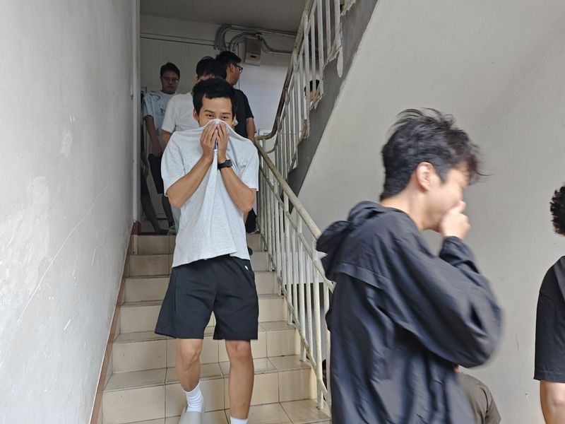 急促哨声划破平静,演练正式开始。烟雾发生器模拟火情,浓烟迅速弥漫楼道,险情瞬时升级。同学们闻声即动,在安全员与辅导员引导下,熟练以湿毛巾捂口鼻、弯腰低姿前行,沿墙根与安全标识分楼栋、分楼层快速撤离。过程中,有同学主动帮扶同伴,引导员实时疏导人流、纠正动作,仅用3分20秒,全体学生便安全抵达广场集合点,高效完成清点报到。“以前看消防知识都是‘纸上谈兵’,这次亲身体验才知道‘弯腰、捂口鼻’多重要。”参与学生表示。演练中,学生无打闹嬉闹,全程认真配合,不仅强化学生风险防范意识,还检验了学院应急预案实操性与多部门协同能力。