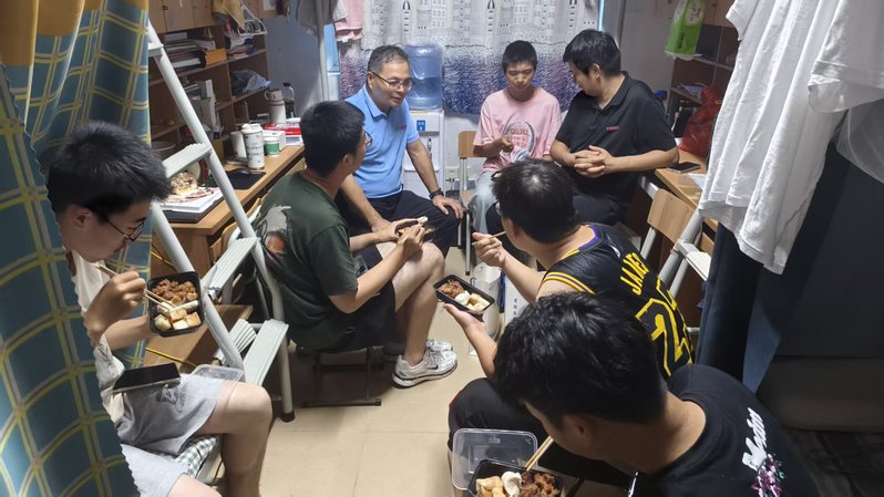 10月1日下午,正值中秋与国庆双节同庆的美好时刻,海洋与食品学院党委书记蔡志荣、副院长(主持工作)梁鹏、党委副书记刘礼元在辅导员的陪同下,一同走访2025级海洋技术专业新生宿舍,为留校过节的同学们送上了满满的节日祝福。