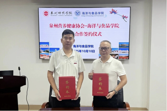 会后,学院与协会正式签订战略合作协议。此次签约标志着我院与协会建立“服务企业、共建共赢”的长效合作机制。未来,我院将持续立足自身学科优势与发展定位,依托泉州海洋文化与食品产业基础,深化产教融合、科教协同,在海洋食品开发、营养健康服务等领域持续发力,为泉州营养健康产业高质量发展注入“海食力量”,助力区域经济社会发展。