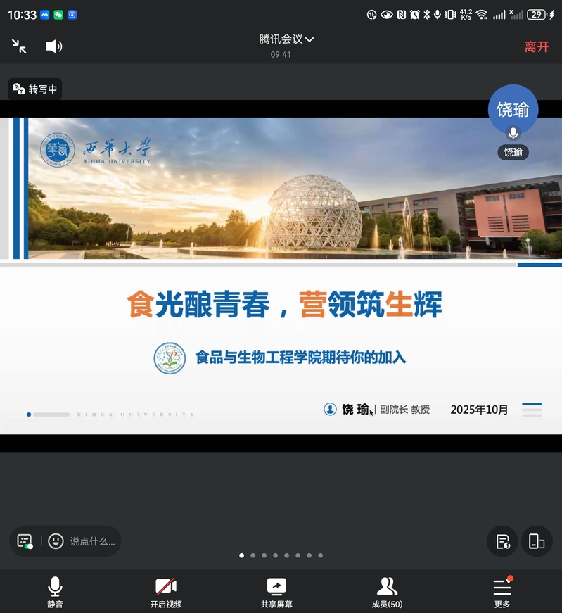10月19日,西华大学食品与生物工程学院面向我院学子开展研究生招生线上宣讲,西华大学食品与生物工程学院副院长饶瑜教授主讲,海洋与食品学院副院长(主持工作)梁鹏教授主持宣讲会。