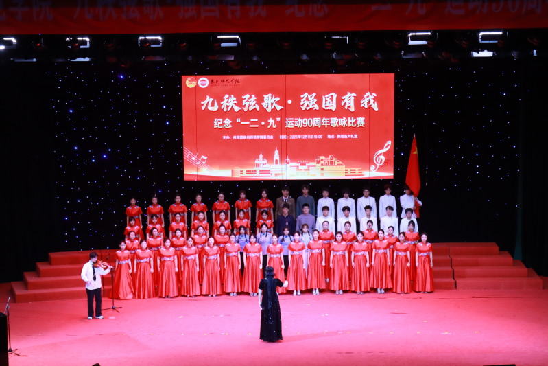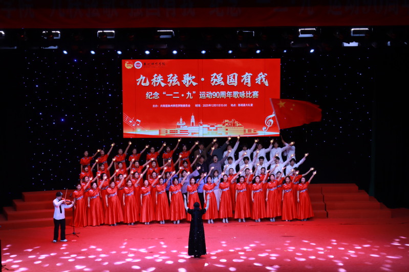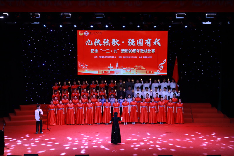 12月11日,泉州师范学院“九秩弦歌・强国有我”纪念“一二・九”运动90周年歌咏比赛在陈祖昌大礼堂举行。我院代表队参赛曲目《天耀中华》凭借情景剧与演唱的融合,以总分第四名(共有15个代表队参赛)的优异成绩荣获特等奖。