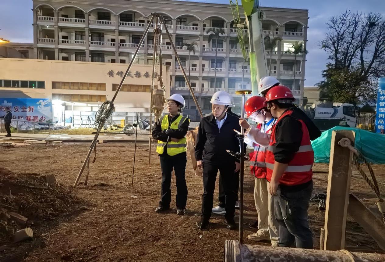 2025年12月19日,南安校区实训综合楼项目顺利开展首根工程桩试桩施工。试桩将验证地质参数、优化施工工艺,为后续工程桩施工提供科学依据,是保障项目质量与安全的关键环节。