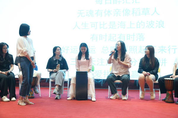 团体音乐治疗的实践探索是本次课程的主要内容。根据参训教师的背景和需求,设计了包括音乐放松、节奏鼓圈及团体即兴演奏、歌曲创作等活动。音乐治疗研究生团队带领参训教师体验了团体音乐治疗的全过程,教师们深刻感受到了音乐活动对身心健康的促进作用。教师们表示,这些实践活动不仅让他们对团体音乐治疗有了更深入的理解,也让他们看到了中学生在这种活动中可能获得的成长和变化。