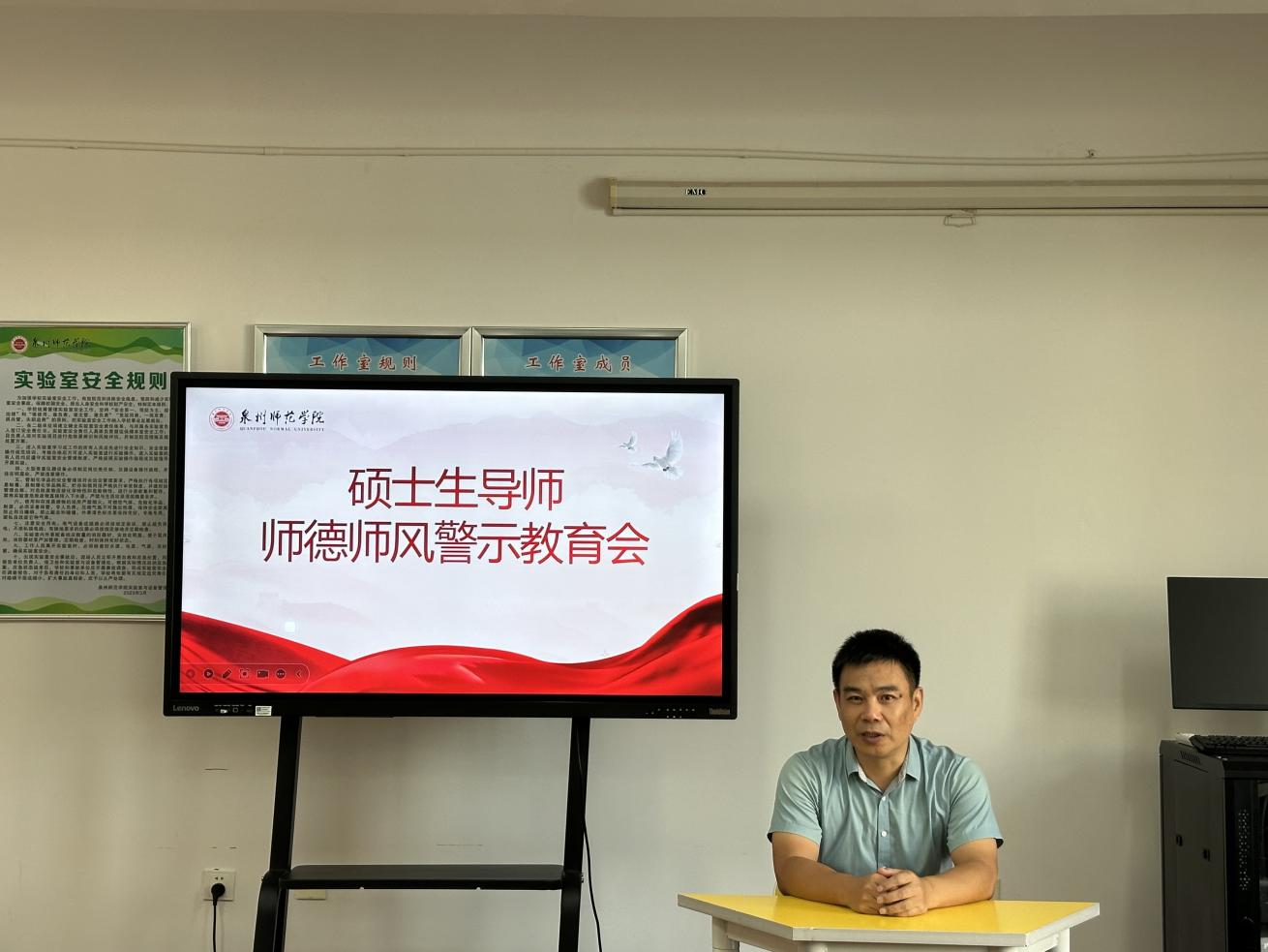 为进一步贯彻落实党中央关于教育强国和师德师风建设的决策部署,全面落实立德树人根本任务,切实提升我院研究生培养质量。日前,我院音乐康疗专业硕士生导师师德师风警示教育会在特教大楼C202召开。副院长(主持工作)邵华、党委副书记刘宗安及全体硕士生导师出席本次会议。