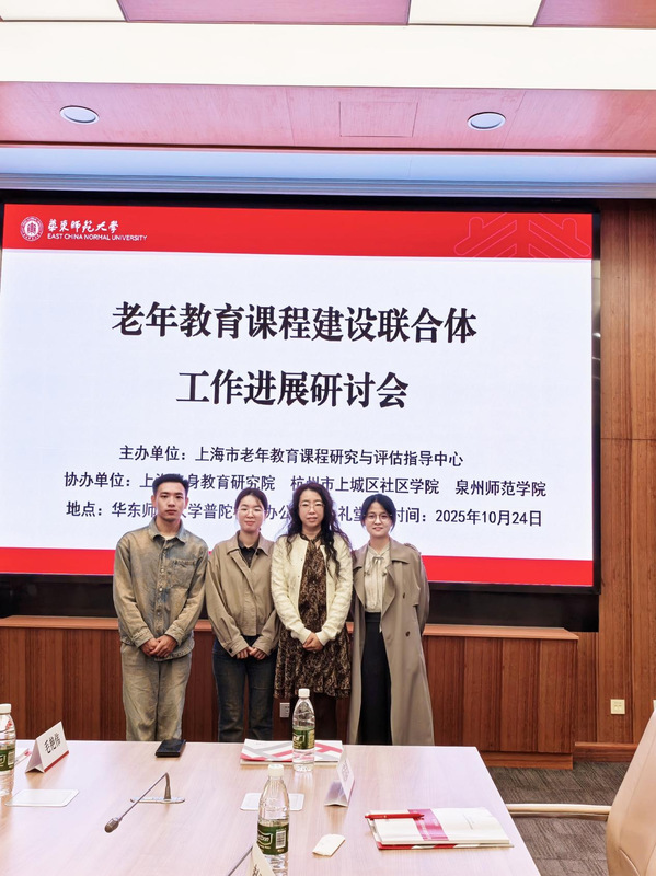 10月24日至25日,由上海市老年教育课程研究与评估指导中心主办,华东师范大学上海终身教育研究院、泉州师范学院等单位协办的老年教育课程建设联合体工作进展研讨会顺利召开,教育科学学院副院长邵华一行参与会议,学前与老年教育系张伶俐博士作主题发言。