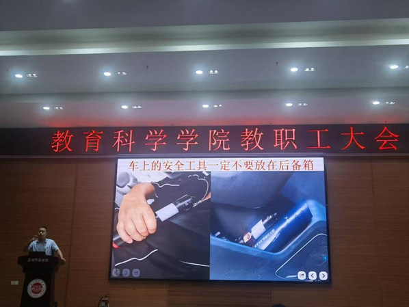培训以2024年全国火灾数据警示开场:去年全国接报火灾87.5万起,其中自建住宅火灾死亡人数占比高达七成,电气火灾更是“头号杀手”。郑劲捷结合南安“8·21”冰箱自燃致两名儿童遇难、古镇镇“12·22”复式住宅6人遇难的惨痛案例,剖析违规插排、超期服役电器、车辆灭火器后置等“小隐患”如何酿成“大灾难”。现场演示脉冲式气溶胶灭火器、多功能应急手电、独立式智能烟感、防烟面罩等“六件套”的正确用法,并播放“见义勇为”模拟演练,提升教职工突发事件处置能力。