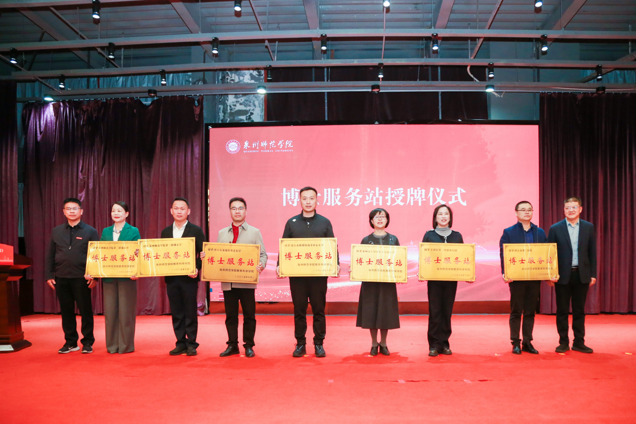 大会同期举行了庄重的校友会授旗、授牌仪式,并为当选的校友会第一届理事会成员颁发聘书。4个校友驿站于现场正式揭牌成立。仪式上,还为7所合作小学、幼儿园及医院授予“博士服务站”牌匾,标志着学院和校友会在社会服务方面迈出新的坚实一步。
