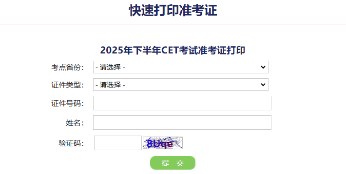 1. 输入省份、证件类型、证件号码、姓名等信息即可打印准考证。