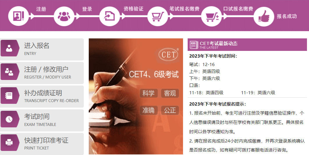 202512月全国大学英语四六级考试于1213日进行,凡成功报考本次四六级考试者,可于125日登录全国大学英语四、六级考试报名网站打印准考证。详细打印流程如下: