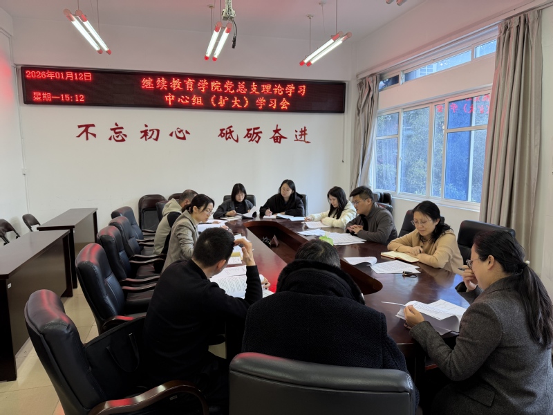 1月12日下午,继续教育学院召开党总支理论学习中心组专题学习会,专题学习国家主席习近平二〇二六年新年贺词重要讲话精神。院领导、党总支委员,党支部书记、支委,科室负责人参加。学习会由党总支书记林国宏主持。